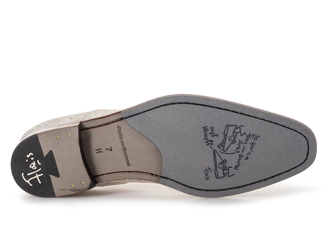 De De Draver 03.27 is vervaardigd op een comfortabele H-wijdte leest, waardoor de schoen extra draagcomfort biedt – ook voor mannen met een iets bredere voet. De zool is volgens de Blake-methode doorgenaaid aan het bovenwerk, een traditionele maakwijze die zorgt voor stevigheid en flexibiliteit. De TPU-loopzool is slijtvast en voorzien van een lichte antislip structuur, ideaal voor dagelijks gebruik.