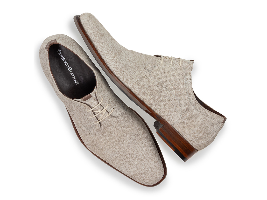 Ontdek de perfecte combinatie van stijl, comfort en vakmanschap met de Floris van Bommel De Draver 03.27. Deze geklede herenschoen uit de nieuwste voorjaarscollectie van het bekende Nederlandse merk is uitgevoerd in beige suède met een subtiele, verfijnde print. Het is een echte blikvanger voor de moderne man die houdt van een nette, maar eigentijdse uitstraling.