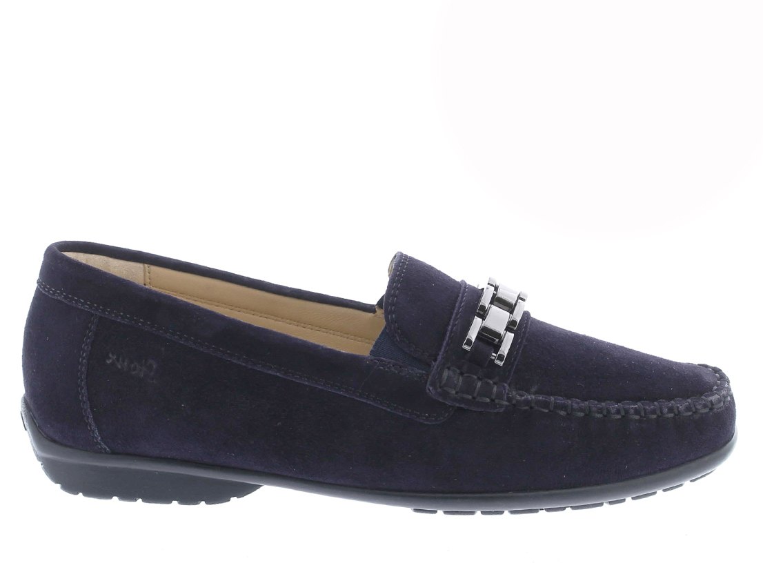 Heerlijk comfortabele dames-instapper in mocassin-maakwijze, van suede met markant element. Ambachtelijk vervaardigd in schoenwijdte H voor de iets sterkere voet – in optimale pasvorm en tijdloze elegantie. Aan de binnenzijde met een leren voering en een zachte, doorlopende en uitneembare leren dekzool – ook geschikt voor de eigen inlegzool. Zachte en fijne rubberzool met platte hak. Een typische dames-mocassin van Sioux.